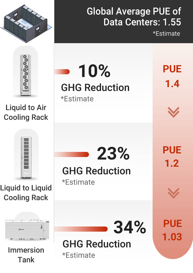 With our immersion cooling technology, we aim to help our customers reduce their data center operating costs, decrease PUE metrics, and lead them to an eco-friendly environment.